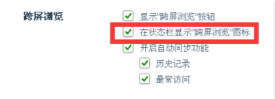 5、同樣的方法,找到跨屏瀏覽,把在狀態(tài)欄顯示跨屏瀏覽圖標前面的對號去掉;