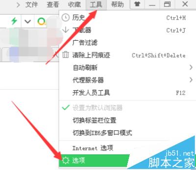2、點擊工具之后,會出現(xiàn)下拉,在下拉里面選擇選項,點擊選項進入;