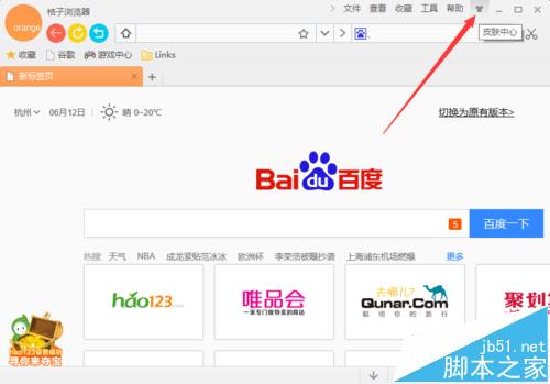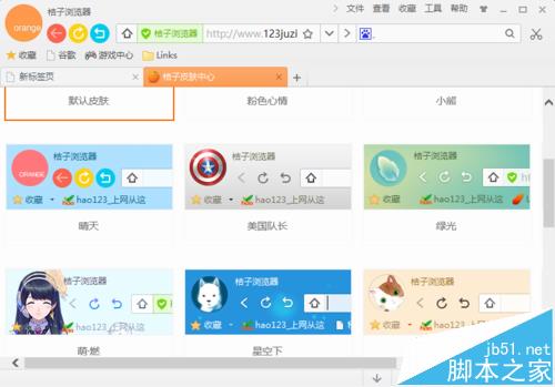 3、點(diǎn)擊“皮膚”圖標(biāo),這個(gè)時(shí)候會(huì)彈出“桔子皮膚中心”對(duì)話框。如圖所示;