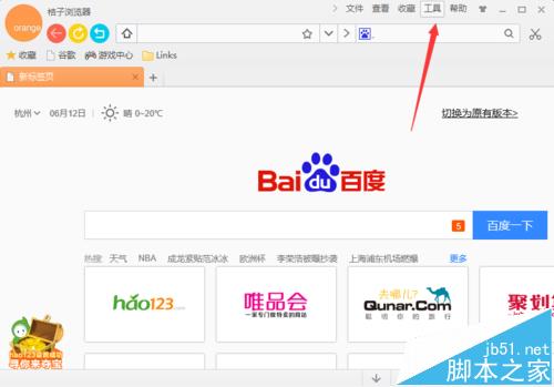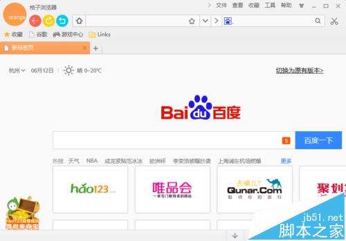1、在計算機桌面“桔子瀏覽器”程序圖標上雙擊鼠標左鍵,將其打開運行。如圖所示;