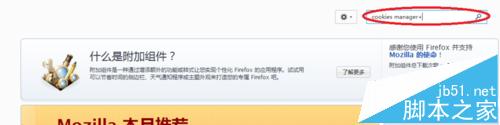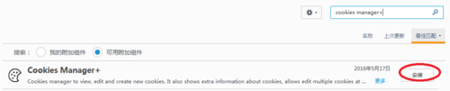 2、在搜索框中輸入cookies manager+,進行搜索。