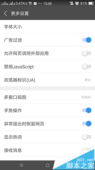 ▲旗魚瀏覽器安卓版設置界面