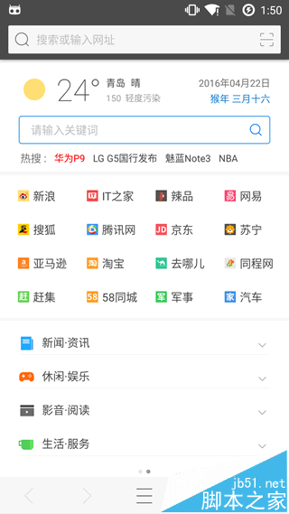 ▲ 旗魚瀏覽器安卓版起始頁 - 九宮格界面