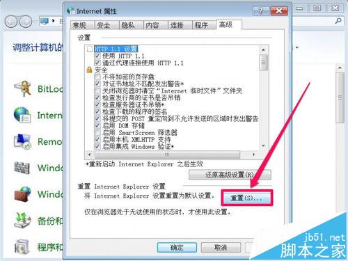 1、如果用了上面方法,還沒有修復(fù)好,還在“高級(jí)”界面,點(diǎn)擊“重置”按鈕。