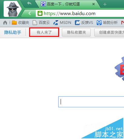 5、現在,你用新打開的瀏覽器窗口去訪問任何你想訪問的網站,就不會在網站上留下痕跡了。同時,為了避免讓周圍的旁人發現,你還可以隨時點擊地址下的“有人來了”按鈕,將隱私窗口藏到任務欄的托盤中,以便等到旁人離開后再次打開瀏覽。