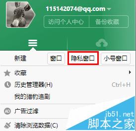 3、但是現在,我想啟用獵豹安全瀏覽器的隱私模式,以便不記錄我的行跡。這該怎么做呢?