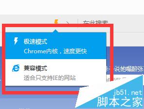 2、點(diǎn)擊這個(gè)閃電位置,就可以看到有極速內(nèi)核和IE內(nèi)核2種,任意點(diǎn)擊其中一種,然后刷新頁面就可以完成切換了