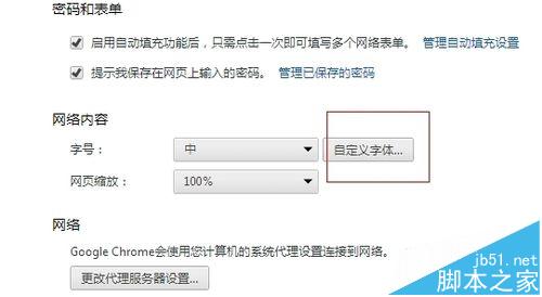 4、找到“網絡內容”一欄中的“自定義字體”,點擊進入。