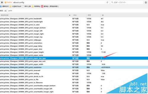 3、這時可以打開所有的設置項,為方便查找,我們在搜索框中輸入print.print,這時就會在列表中顯示出打印機相關的項目了