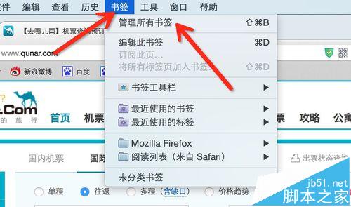 7、當我們收藏了很多網頁之后,可以通過上方“書簽“菜單欄來管理你所有收藏的網頁,也很方便。