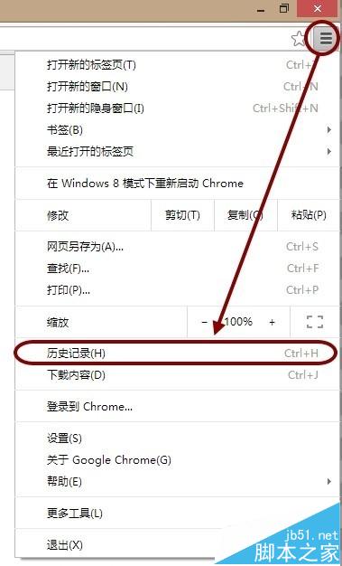 5、除此之外,我們還可以打開Chrome選項(xiàng)中的歷史記錄。或者按下快捷鍵Ctrl+H