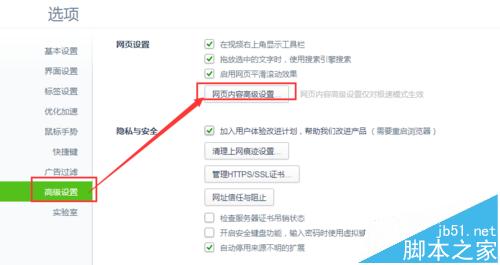 2、由于視頻使用的依然是flash插件支持,所以我們可以在flash插件方面想辦法禁用它。打開瀏覽器選項。