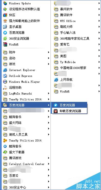 2、找到你的百度瀏覽器選項,在分選項中的百度瀏覽器右鍵