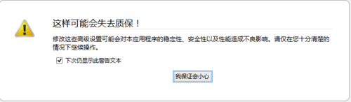 2、按回車鍵后,打開了一個警告頁面,單擊“我保證會小心”即可,如下圖所示: