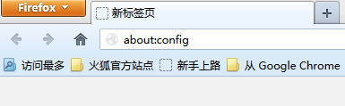 1、首先打開Firefox瀏覽器,在地址欄輸入“about:config”(不包含雙引號,下同),如圖所示: