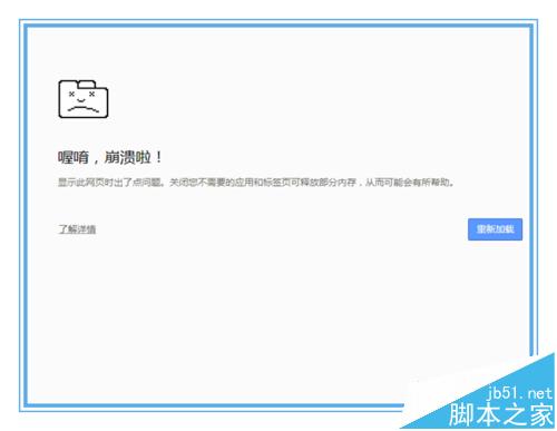 比如BAT的頁面,都可能出現異常,但報錯有可能不同,如下圖是另一種報錯現象,瀏覽器直接提示崩潰了,重啟瀏覽器或電腦有可能能打開頁面,但很頻繁會再現,工行頁面是100%出現。