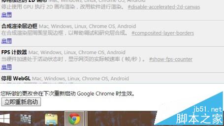 5、成功啟用后下方會有您所做的更改會在下次重新啟動Google Chrome時生效,如果當前你想立刻重啟chrome瀏覽器可點擊立即重新啟動,或下次手動打開Chrome瀏覽器