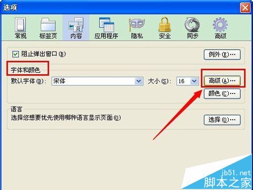 3、看到字體和顏色那里,點擊后面的“高級”按鈕:
