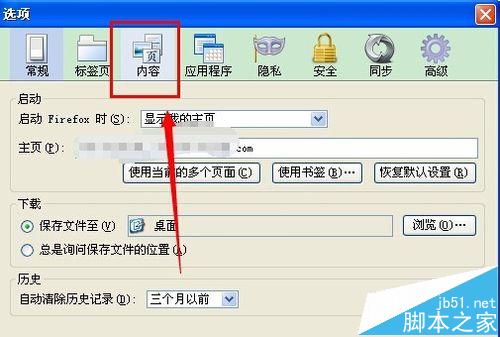 2、然后點擊選項里的“內(nèi)容”選項卡: