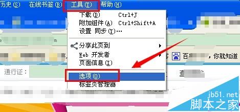 1、打開火狐瀏覽器后,看到上面的“工具”菜單,點擊打開,然后選擇“選項”: