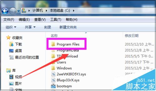 2、打開本地磁盤C,點擊“Program Files"文件夾。