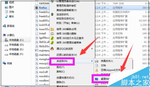 5、找到firefox后,鼠標右鍵點擊后,在彈出菜單中點擊“發送到—桌面快捷方式”。