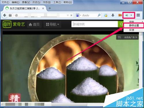 8、如果在播放視頻,或者打開網頁有不想聽聲音,就可以點擊倒三角圖標,在其中選擇“靜音設置”,或者直接點擊“喇叭”即可。