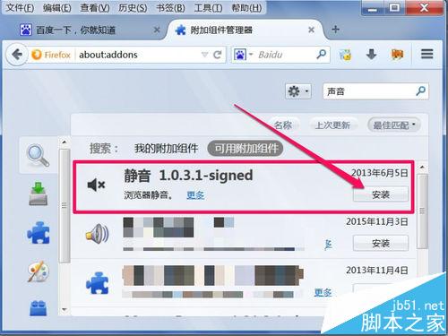 4、就能找到靜音插件,如下圖中的“靜音 1.0.3.1-signed”,點擊右側的“安裝”按鈕。