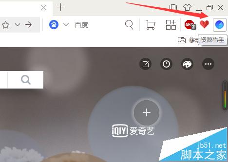 1、如圖所示,我們打開UC瀏覽器,然后可以在右上角看到資源獵手這個小插件。