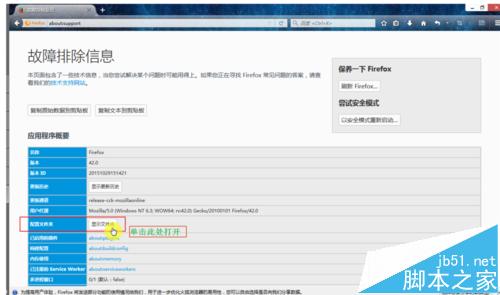 2、在故障排除信息頁面中可以找到配置文件所在文件夾的位置信息。如圖,單擊“顯示文件”。