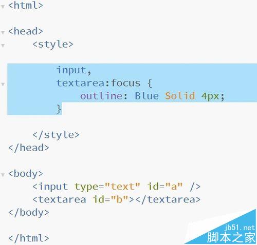 3、如果需要,可以給元素增加邊框樣式: input,textarea:focus { outline:Blue Solid 4px; } ,但要先去掉:input,textarea:focus {outline: none;}