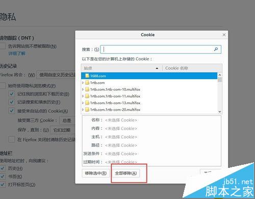 4、然后繼續(xù)點擊“顯示cookie”,然后繼續(xù)點擊“全部移除”。
