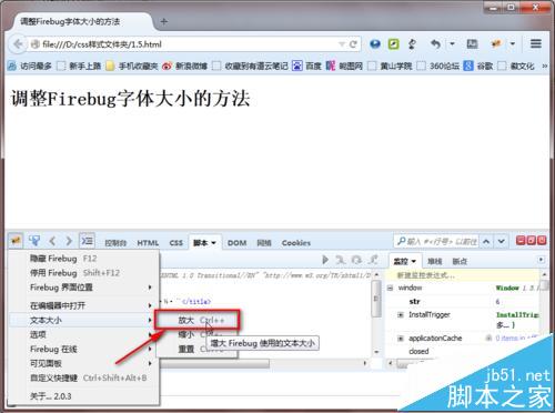 Firebug的默認字體很小,我們看起來有點費勁。那么我們怎么將它的字體調大一些呢?接下來我就講一下它的方法。以前舊版本的Firebug,如果要調整字體的大小,我們還要到它的源文件中改變其中的css文件。這樣就非常麻煩,但是新版本的Firebug為我們簡化了操作,我們直接在頁面中就能改變字體的大小了。下面分享設置方法