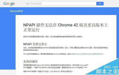 5、注意,上述支持NPAPI插件的方法,僅僅支持Chrome45以下的版本,Chrome45+的版本,已經全部停止對NPAPI插件的支持。這時,我們只能坐等這些插件網站提供相應PPAPI版本的插件,或者臨時換用其他瀏覽器了。