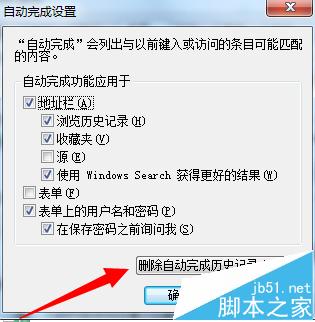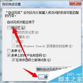 7、然后返回自動完成界面,將【地址欄】選項前方勾取消,然后點擊確定