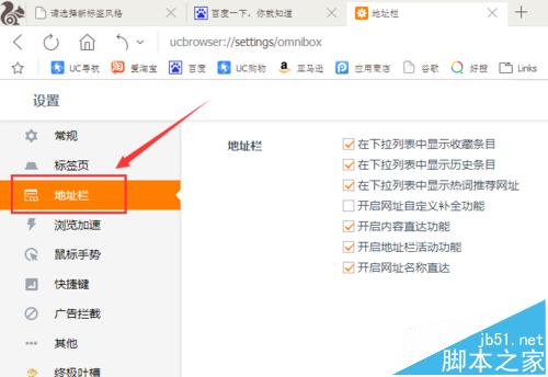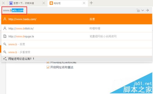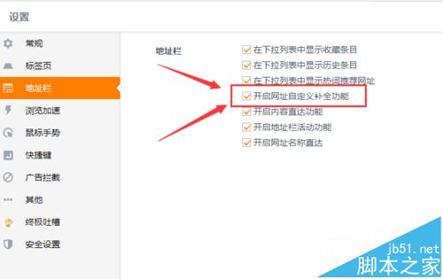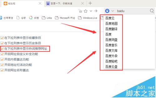 6、在地址欄中我們還可以設置其他的效果,其中“在下拉列表中顯示熱詞推薦網址”指的是地址欄旁邊小搜索框中的下拉搜索量比較高的詞。可以大大提高我們的辦公效率。