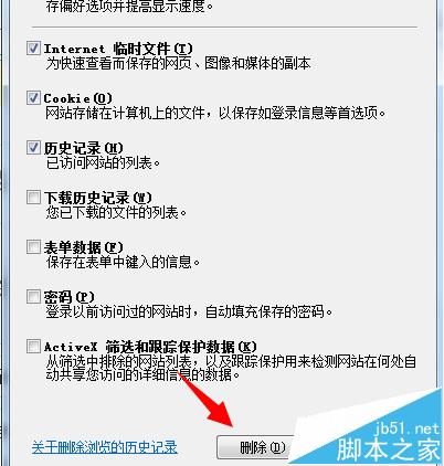 6、將歷史記錄和cookies勾選,點擊下方刪除