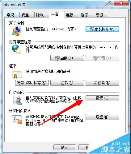 4、進入”內容界面“,在【自動完成】選項點擊后方【設置】
