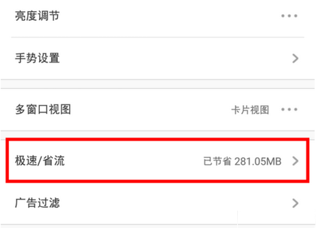 進入瀏覽器設置界面之后,找到并點擊“極速/省流”選項。
