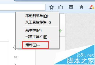 1、通過右擊工具欄,選擇“定制”,或者在地址欄的最后面點擊那三個橫桿圖標,打開菜單,在彈出窗口的底部點擊“定制”,打開“定制”界面;