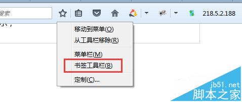2、顯示書簽工具欄設置,在工具欄右擊鼠標,去掉勾選“書簽工具欄”,書簽就不顯示了