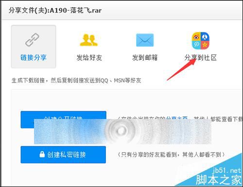 3、這時(shí)在分享的銨鈕上面就會(huì)彈出一個(gè)把資源分享到哪里的選項(xiàng)。它默認(rèn)的是在鏈接分享上面。想要把資源分享到空間就點(diǎn)擊最后面的分享到社區(qū)。