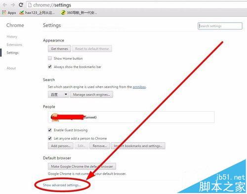 3、在設置頁面,往下拉,找到“Show advanced settings...”,單擊之