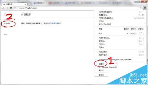 2、打開Chrome瀏覽器設(shè)置頁面,然后進(jìn)入擴(kuò)展程序。