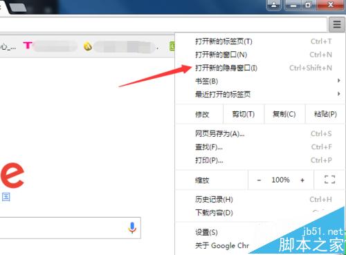 2、彈出的下拉的菜單中可以看到為“打開新的隱身窗口”的選項。