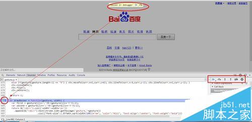 在左側的腳本代碼編號,鼠標點擊即可添加斷點,添加斷點后,刷新網頁,程序運行到斷點即可看到斷點調式的狀態了,具體調試需要在自己想查看某個方法里邊是否有問題,一步步排除,效果很好