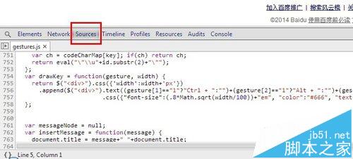 Sources可以查看運行的腳本,調試一般都是在Sources調試的,所以程序開發者需要了解和熟悉Sources的使用