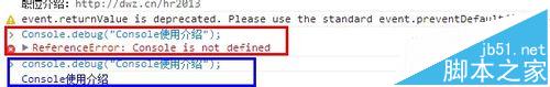Console可以查看網頁運行后提示的消息,錯誤或者警告以及輸出內容等,網頁后臺可以使用Console.debug("輸出內容");來在Console輸出顯示,可以做到調試的作用吧,不過一般真正調試不是拿Console。console.debug("Console使用介紹");console是小寫形式,不然提示沒有Console