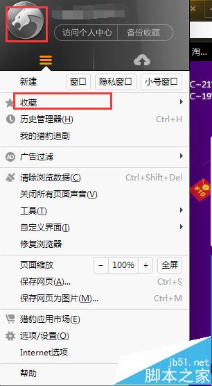 2、點擊左上角的獵豹的圖標,選擇收藏。