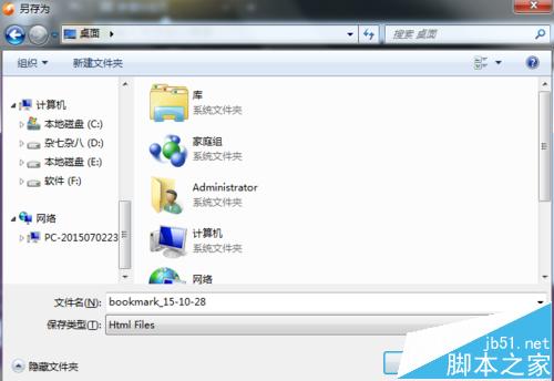 4、選擇導出收藏的目標位置,命名,保存。